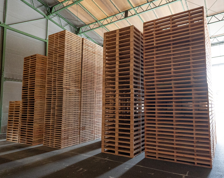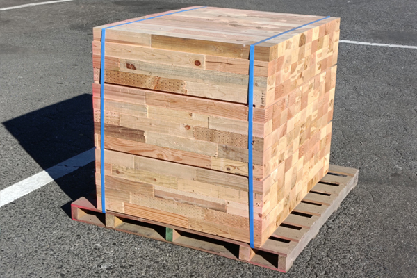私たちは、間柱に使われない端材をフィンガージョイント加工し、木製パレット「エコパレット」として再生しています。