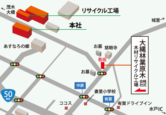 大縄林業原木株式会社の本社とリサイクル工場は併設しています。